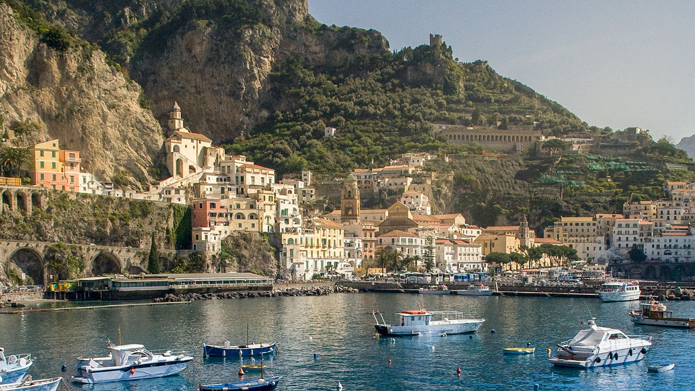 La Costa Amalfitana es la definición de la Italia mediterránea: Mar turquesa y pueblos de casas en tonos pastel sobre escarpadas montañas.